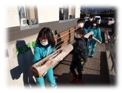 「幼保小の架け橋プログラム」~5~6年生、矢浜保育園へ丸太橋を贈呈