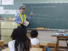5月23日(火)の3限目、尾鷲警察署交通課および尾鷲地区交通安全協会のご協力のもと、1~2年生を対象とした「交通安全教室」が行われました。最初に教室で尾鷲署の三宅 歩巡査部長から、信号機の見方や道路を横断する際に気をつけなければならないこと等についてのお話を聞いた後、実際に校外に出て、横断歩道の正しい渡り方等についての体験学習を行いました。