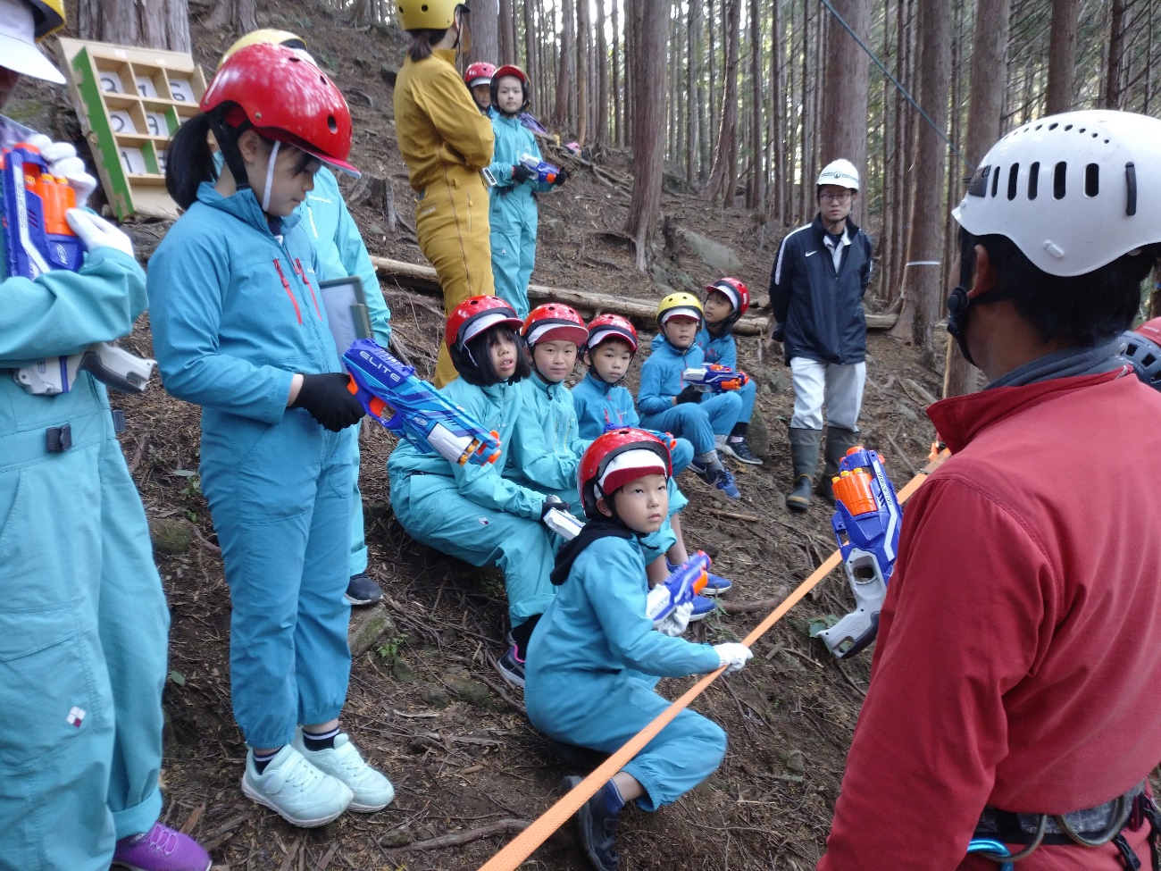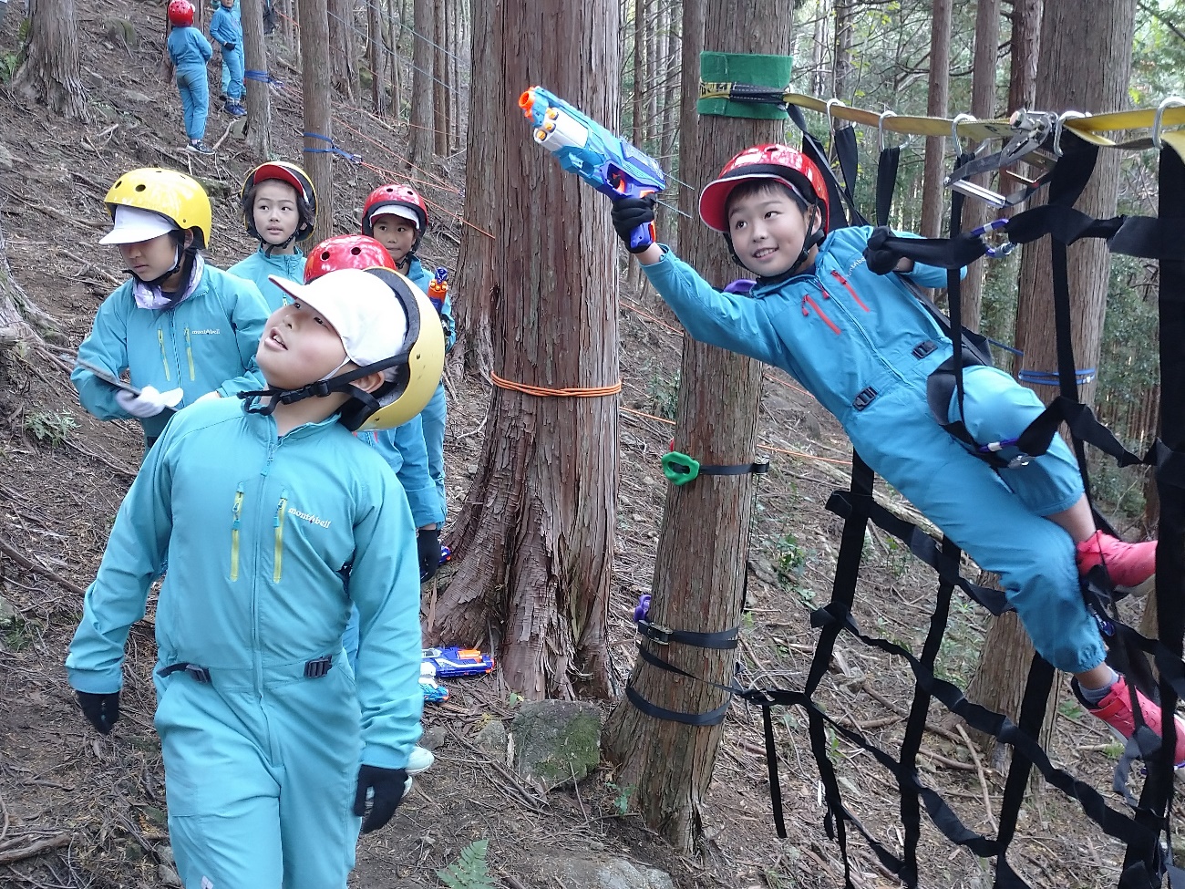 八鬼山のふもとにある「ニコニコ公園」に出かけ、スラックライン(綱渡り)やジップライン(ターザンロープ)等の活動に取り組み、山・森の楽しみ方やリスクマネジメントについて学びました。