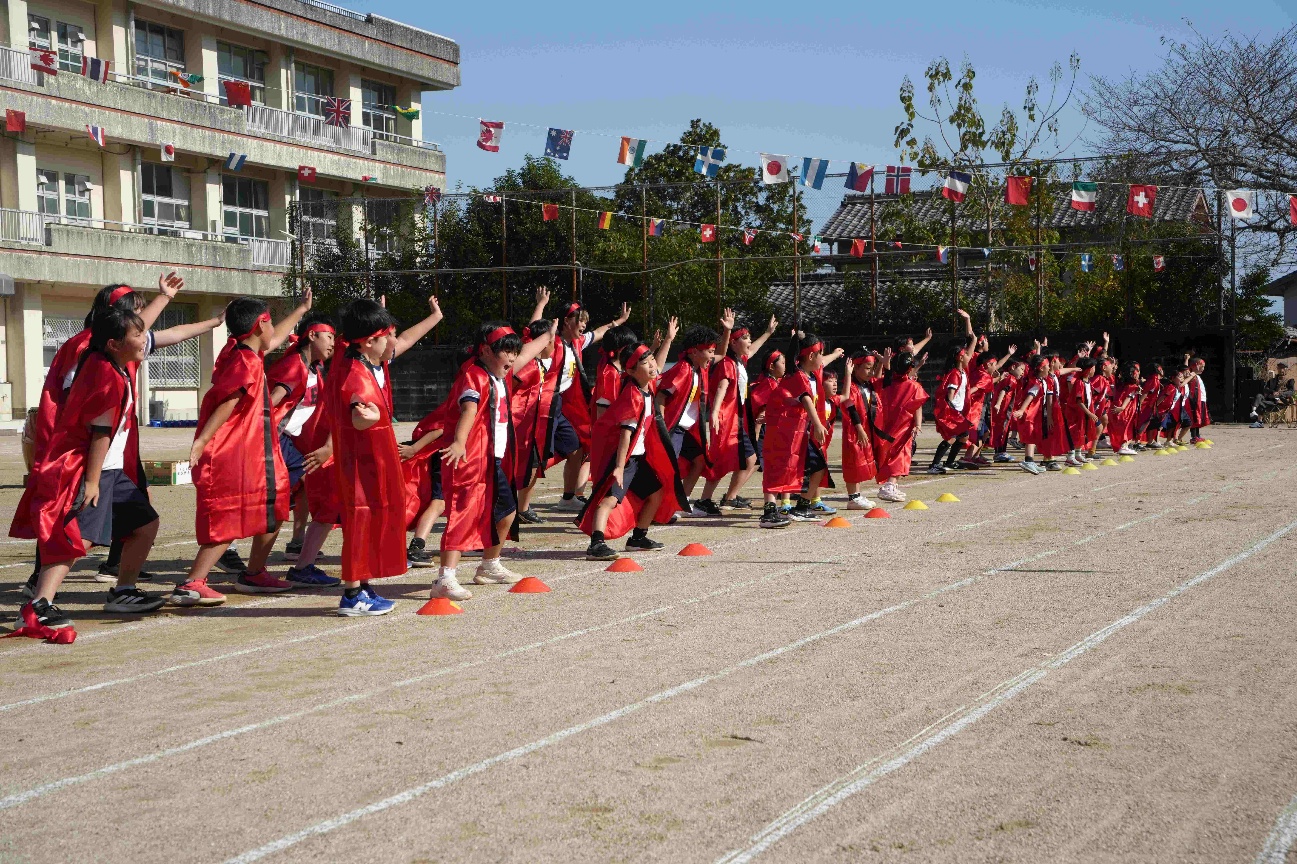 運動会 11月8日(日)晴天に恵まれ、運動会が開催されました。徒競走や綱引き、ダンス、全校リレーなどの計14種目の競技が行われました。ご家族らの声援を受け、これまでやってきた練習の成果を出し切り、力いっぱい頑張りました。