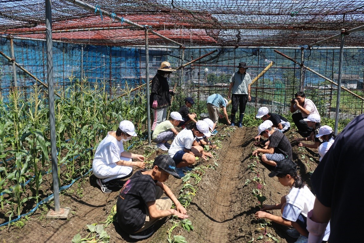 6月19日、さつまいもの苗植えをしました。向井小学校は、学校の下にある畑で、いろいろな作物を育てています。今回のさつまいもは、みんなで植え、秋の収穫に向けてこれから当番を決めて水やりをしていきます。今年はどれだけとれるか、今から楽しみです。