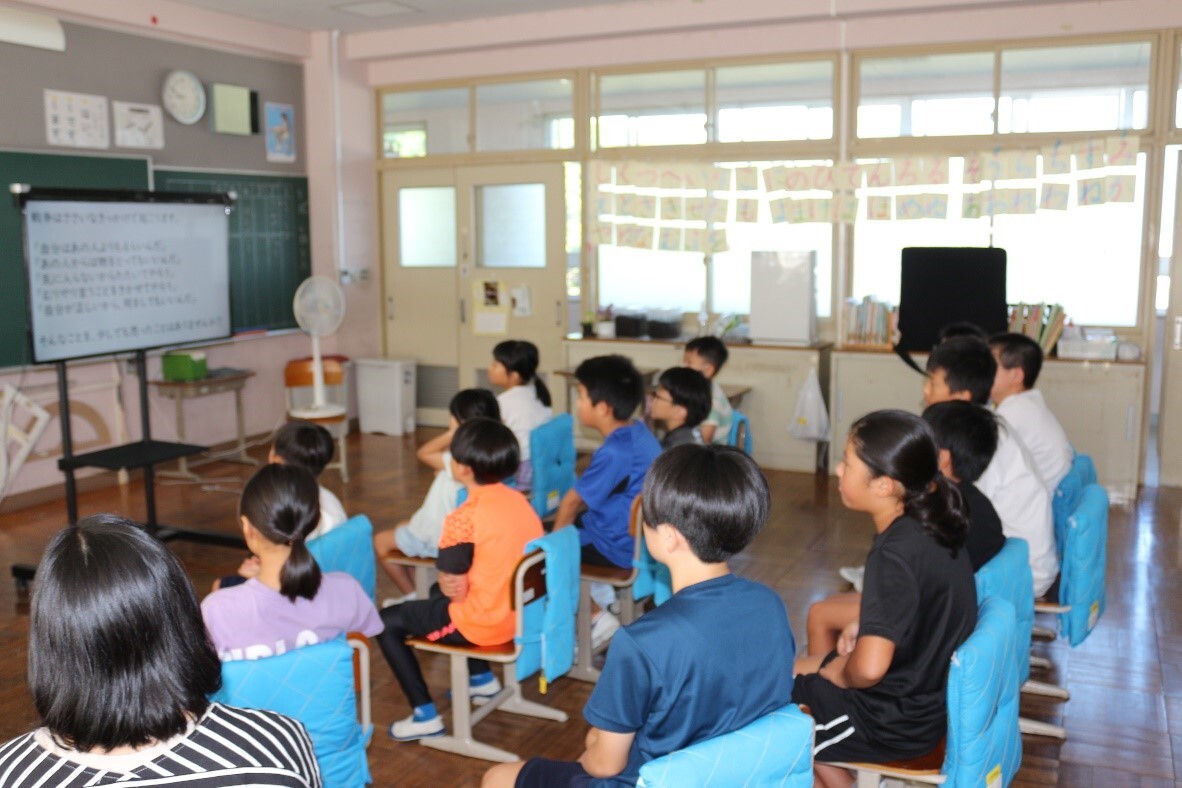 8月4日(金)の全校登校日に、全校で平和学習を行いました。今年は「せかいいち うつくしい ぼくの村」というアフガニスタンを舞台にした絵本の読み聞かせから、戦争について考える機会を持ちました。子どもたちは、「戦争がなくなって欲しい」といった感想を持っていました。