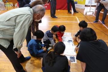 11月6日(月)に防災イベントを実施しました。今回は地域の方々も来ていただいての企画です。内容は、尾鷲市防災危機管理課による備蓄品の紹介や炊き出し、川口三重大准教授の講話に加えて、日産の方々によるEV(電気自動車)デモンストレーションもありました。写真は、限りあるEV車の電力で家電を使う際の優先度をグループごとで考えているところです。