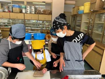 1月11日(木)、育ててきた大根を使って、おでんづくりをしました。全校で大根を抜いた後、学級ごとに調理をしました。1年生は5・6年生に教えてもらいながら一緒に下ごしらえをしました。できあがったおでんはとてもおいしく、大根を8個もおかわりする子がいました。