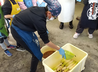 学校に持ち帰ったときわ漬けは、みんなに分けて家に持ち帰りました。