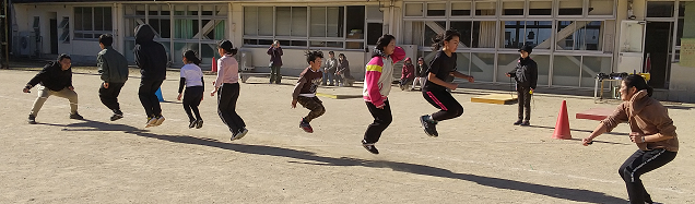 1月30日(木)になわとび大会を行いました。風が強い中でしたが、子どもたちは積み重ねてきた練習の成果を発揮し、個人技を発表したり、チームで全員とびや8の字とびの回数に挑戦したりしました。