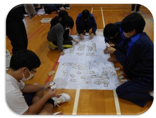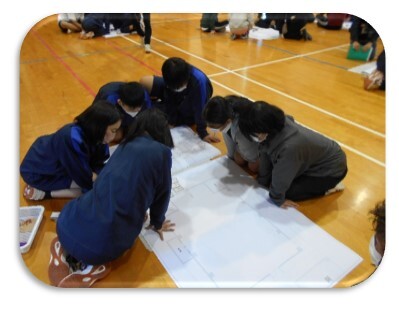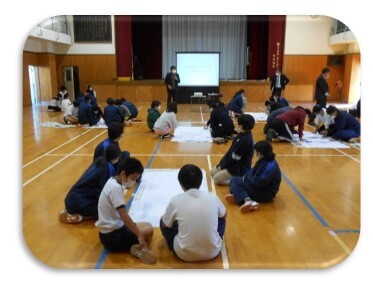 11月18日(金)に、賀田小学校5・6年生と輪内中学校全校生徒で合同防災学習を行いました。避難所運営ゲーム(HUG)と防災講演会を行いました。
