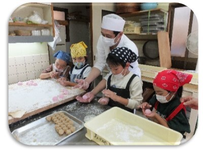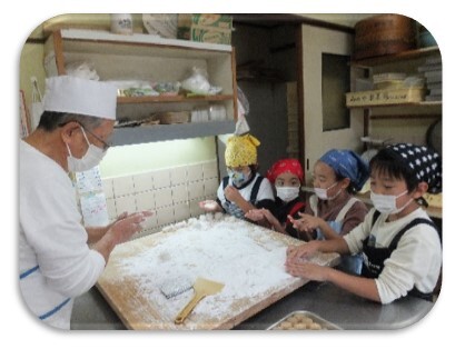 ⦿1年生が町探検で賀田の「みのや」さんに行き,和菓子を作りました。【11月21日】