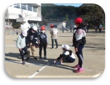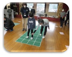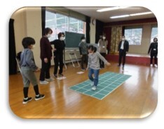 12月13日(火)、1年生が町たんけんで「賀田コミュニティセンター」に行きました。目的は,地域の方と一緒に「スクエアステップ」をすることです。最初は難しそうでしたが、地域の方や講師先生に丁寧に教えていただき、上手くできるようになりました。