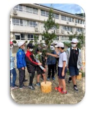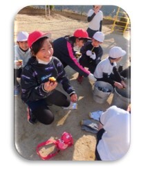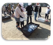 12月16日(金)に焼いも大会をしました。11月に収穫したサツマイモを縦割り班のメンバーでおき火に入れました。焼き上がりを待つ間、休み時間に練習してきた「石けり」を楽しみ,その後焼いもをおいしくいただきました。