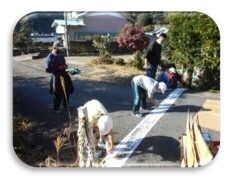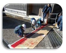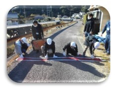 12月12日(月)に、5年生が防災学習の一環で三木里地区の標高ラインのペイント塗りをしました。市の防災危機管理課の協力で行うことが出来ました。