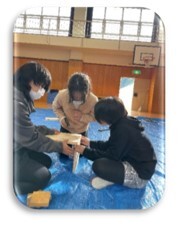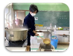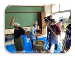 12月9日(金)に、トチ餅づくりを行いました。その日に向けて、5日(月)から「アク抜き」の作業を行い、アクを抜いた実を、もち米と一緒に蒸し、臼と杵で一生懸命つきました。最後に餡を入れて「トチ餅」の完成です。とてもおいしくいただきました。