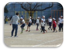 第1部が運動場で,第2部を体育館で行いました。