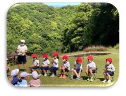 5月2日,「春の遠足・1年生を迎える会」を行いました。当日はとても良い天気に恵まれ,バス2台に分乗して梶賀の町に行きました。