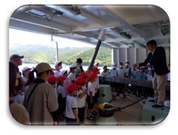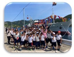 5月12日(金)に,三木浦漁港で「第八十七長久丸」を見学しました。建造3年目にして初めての入港です。全長57メートル・497トンの船の大きさに,子どもたちも教職員も大喜びで見学しました。その後の餅まきも大変盛り上がり,みんな袋いっぱい取っていました。