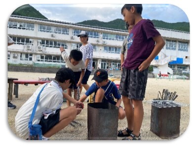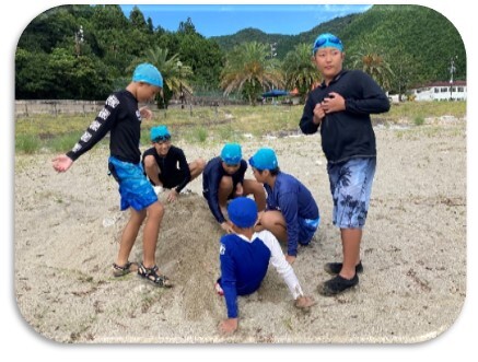 7月20日に6年生が自然体験教室を行いました。今年も三木里海岸での海遊びとシーカヤック,夕食作り(カレー),キャンプファイヤー,肝試しです。濵田先生が持参した本格的なかき氷機で作ったフワフワのかき氷も食べました。楽しい1日でした。