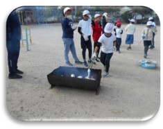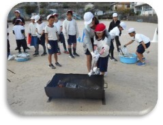 28日,焼きいも大会を行いました。8日に収穫したサツマイモです。みんな美味しそうに食べていました。焼けるまでの間,定番の「石けり」も楽しみました。