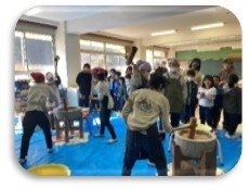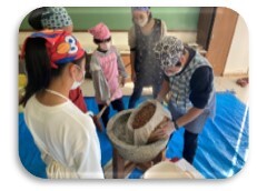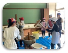高学年が総合的な学習の時間で学んでいる「トチの実学習」の最終段階「トチ餅づくり」を8日(金)に行いました。その日に向けて、4日(月)から「アク抜き」の作業を行いました。今年も、小川久美子さんにご協力いただきながらの作業です。いつもありがたいことです。灰を使ってアクを抜いた実を、もち米と一緒に蒸し、臼と杵で一生懸命つきました。最後に餡を入れて「トチ餅」の完成です。とてもおいしくいただきました。