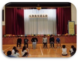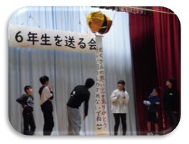 2月22日(木)に「6年生を送る会」を行いました。今年の卒業生は8名です。この日のために,5年生を中心に在校生が考えてくれたプログラムをみんなで楽しみました。当日は雨天のため、第1部の遊びと第2部の発表を体育館で行いました。
