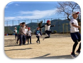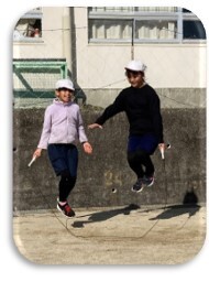 2月2日(金)になわとび大会を行いました。12月から学級や縦割り班で練習してきた成果を発表する場です。残念ながら6年生の欠席が多かったのですが,個人種目では「1分間で何回とべるかチャレンジ」「得意技発表」を,全校で「8の字とび」を行いました。