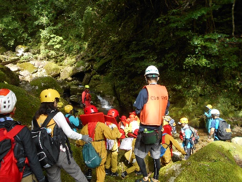 賀田小では、6年生が学びたいテーマを話し合い、「川にいる生き物を知りたい」「水に触れる楽しさを体験したい」「川で遊ぶ楽しさを体験したい」、そして、これらを通して「自然の大切さを考えたい」とし、「川育」に決めました。「でんがらの滝」へは、国道42号線矢ノ川トンネル尾鷲側入口手前から行くことができます。周り一面の木々、大きな岩やそこに生えるこけ、澄んだ水など、上流の様子を目の当たりにしながら上ったり下りたりすると、滝つぼに到着しました。、プールの水に比べるとかなり冷たいですが、そんなことはお構いなしに子ども達は大喜びで水の中へ入っていきました。はじめての場所で尾鷲の自然を満喫することができました。