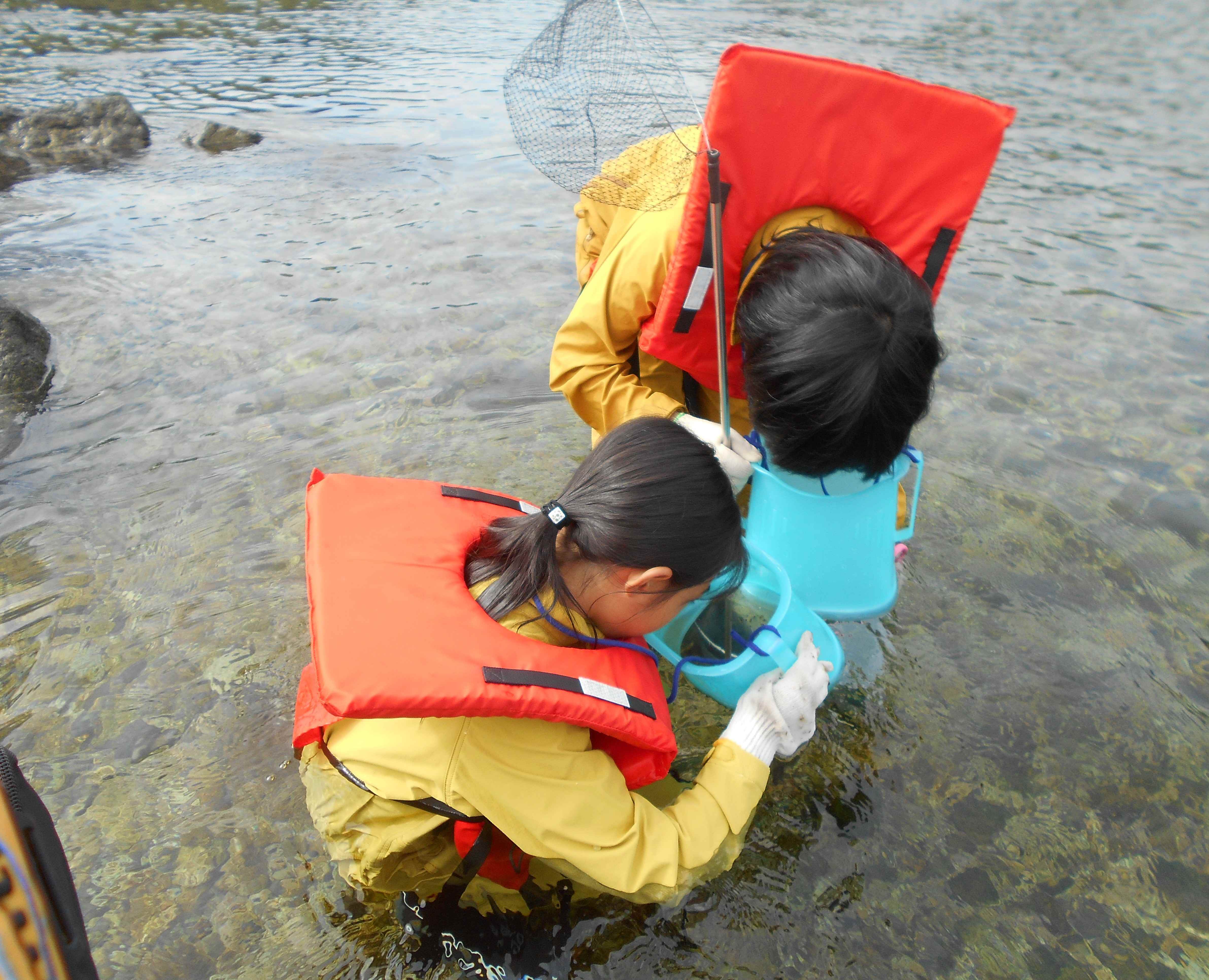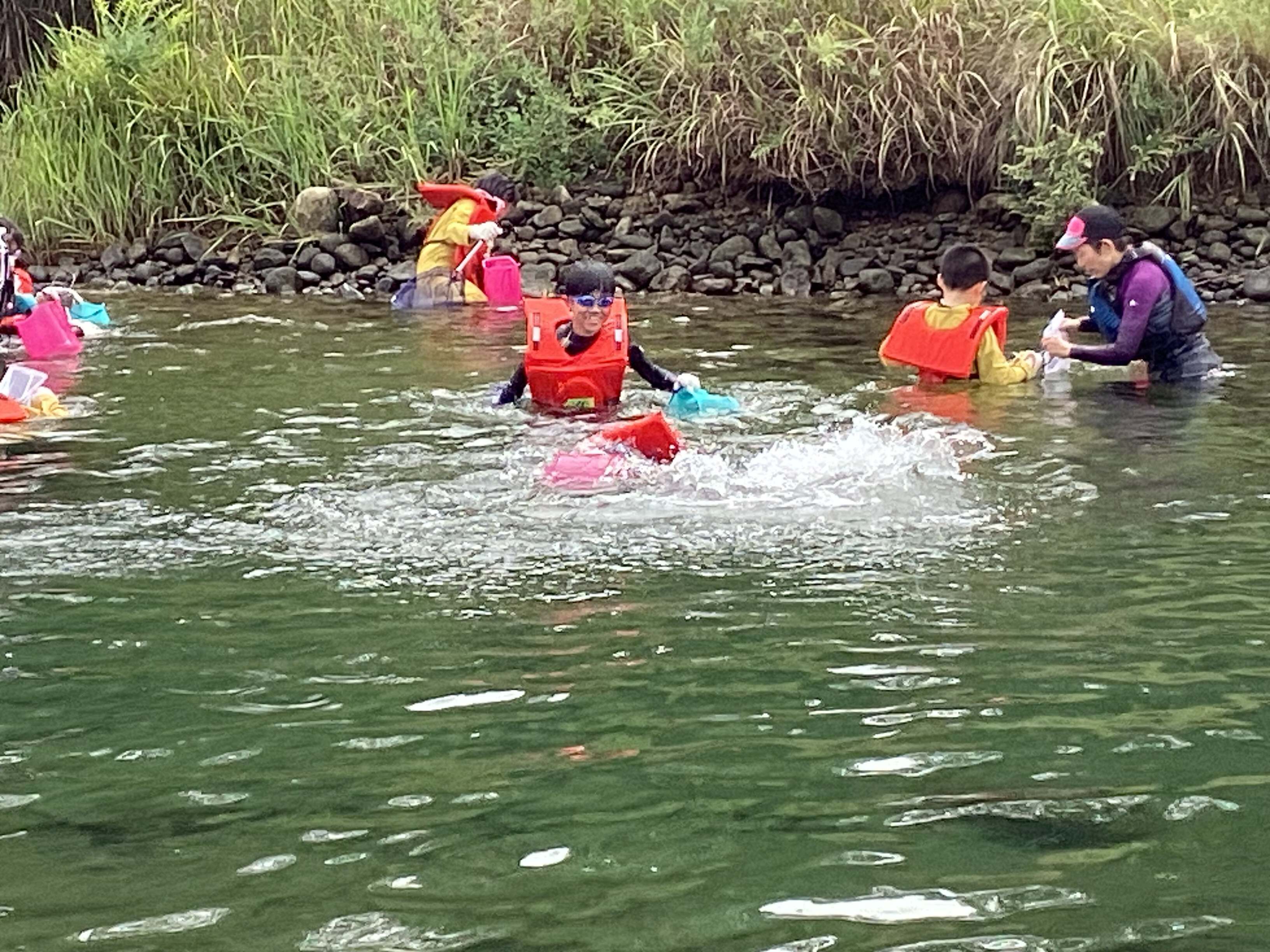 3・4・6年生が「尾鷲育」の授業で、矢ノ川下流域に行ってきました。6月に行った上流域に比べると、石や周りの木・水の流れや深さなど、様子が大きく違うことを確認しました。また、川の水と海の水が混じりあう場所では上が川の水で冷たく、下が海の水で少し温度が高いことも体感しました。また、生き物をとるなどして、自然を満喫していました。