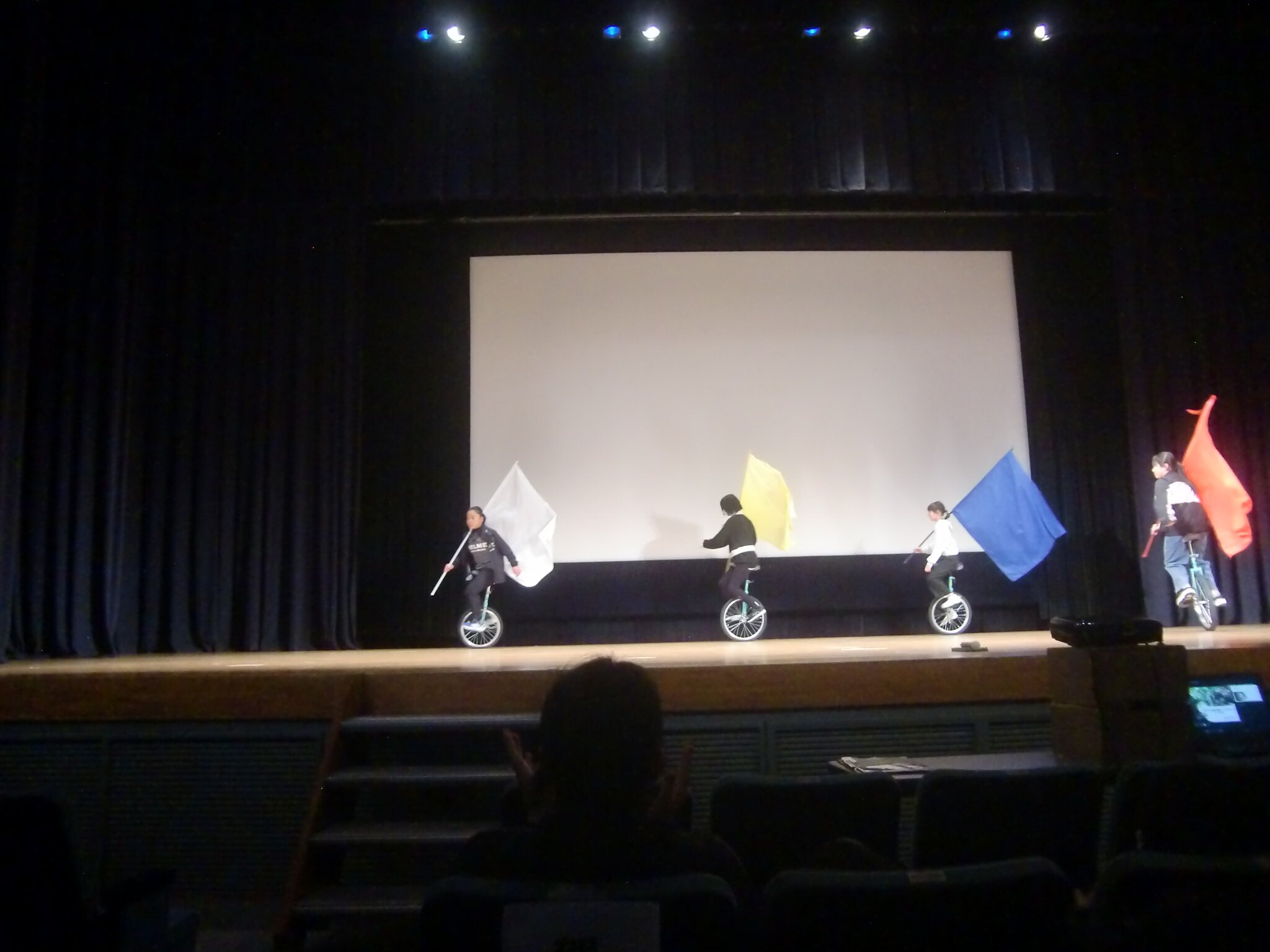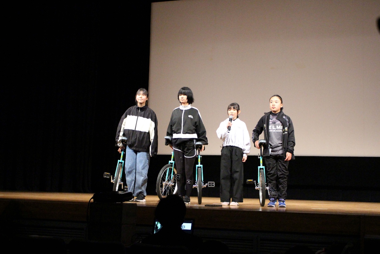 11月28日(金)、せぎやまホールにておわせっこ共育フェスティバルが行われ、市内の小中学生を代表して6年生が「トチの学習」に関する発表を行いました。当日は、これも賀田小の伝統である一輪車での入場で会場をどよめかせ、その後、一年間のとちに関する学習についてスライドを使いながら説明しました。大舞台での発表は、とても良い経験となりました。
