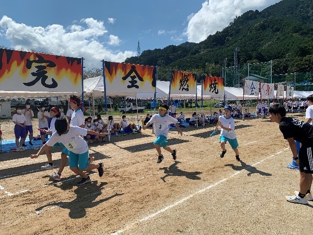 9月30日(金)午前に1・2年体育祭、10月1日(土)午前に3年体育祭を実施した。 今年度は、コロナ対策および熱中症対策のため、時期を例年よりも遅らせ、半日ずつの2日に分けて実施した。前日の夜、雨に降られたものの、当日は2日間とも素晴らしい天気に恵まれ、各学年とも競技やダンス発表に精一杯取り組んだ。