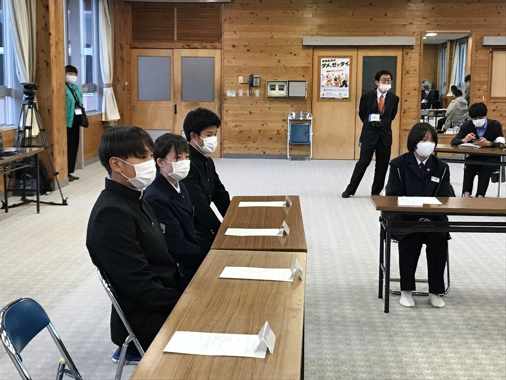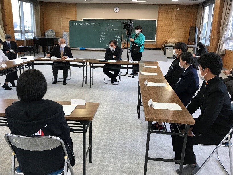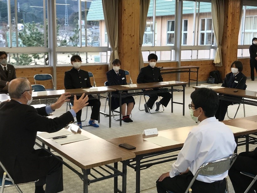 1月17日(火)、本校多目的ホールにおいて、本校および輪内中生徒代表と尾鷲市長との懇談会が開催された。初めのうち、生徒たちは緊張した様子だったが、今の尾鷲に対する思いや、将来に向けての要望などを市長に対して発言していた。 限られた中ではあったが、生徒たちにとって大変有意義で貴重な時間となった。