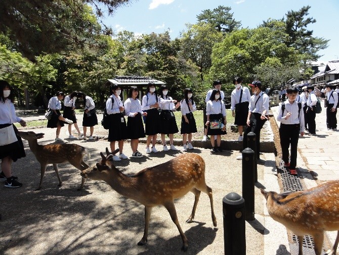 5月24日(水)から2泊3日の日程で、奈良・京都・大阪を巡る修学旅行に行きました。天候にも恵まれ、訪れた先々で見学や体験、食事や遊びなど、大いに満喫した3日間となりました。