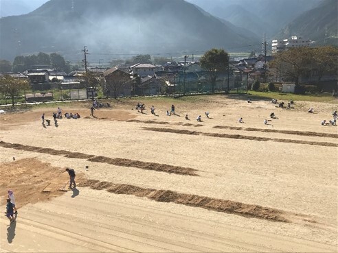 9月30日(土)午前、学校運営協議会(コミュニティスクール、CS)主催による、グラウンド整備がありました。当日は、CS・保護者20人、生徒100人、教職員20人が集まり、まだまだ暑さが厳しい中、汗をかきながら黙々と草抜きを行いました。また、ボランティアで橋本組からも8人来ていただき、新しく搬入された土をならす作業に励んでくれました。