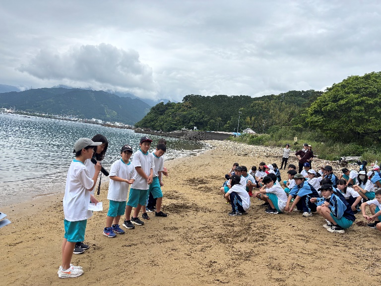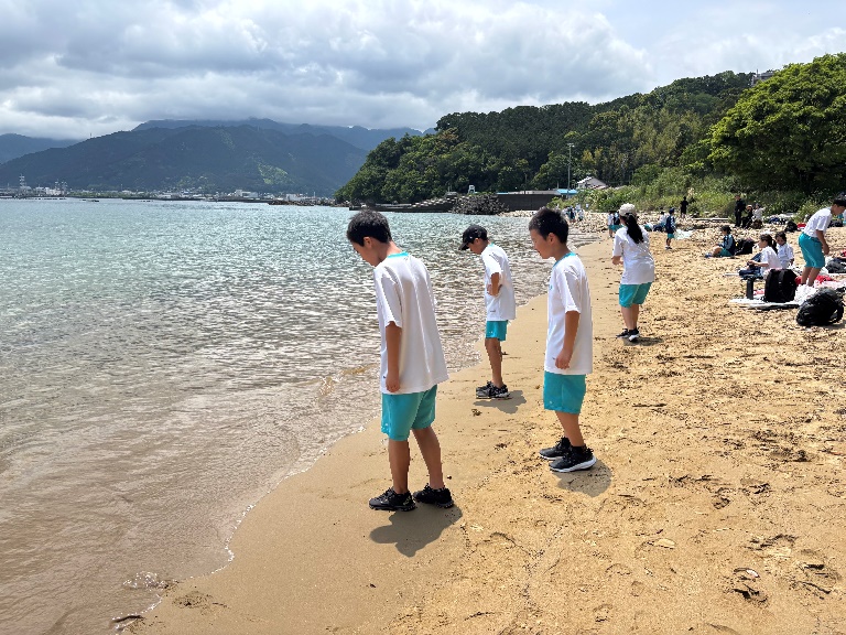 5月23日(金)、1年生が遠足を実施しました。学校に集合してから、徒歩でふるさと海岸へ行きました。室長会の出発式を行い、現地では三重県水産研究所の所長さんから施設の説明もしていただき環境についても学ぶことができました。現地では、室長会が学年が交流できるようにと準備を重ねてきたレクリエーションや1分間トーク、お菓子タイムを通して楽しい時間を過ごしました。最後に海岸や水産研究所のトイレの清掃を行い帰路につきました。