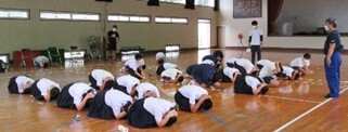 10月3日(月)、輪内中学校に「地震体験車」がやってきました。