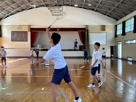亀井先生の公開授業研究を行いました。「ドライブ,ヘアピン,ロブ,スマッシュ」