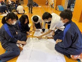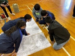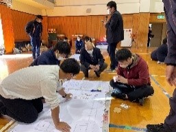 今年度は、尾鷲の各小中学校で防災学習を実施する際に、川口先生をアドバイザーとして派遣してもらえるということになりました。そこで、今回は一歩進んで、避難所運営について考える学習にチャレンジしてみました。小中の縦割りのグループで取り組みました。小学生もしっかりと自分の意見を言うのには大変感心しました。どのグループも熱心に議論し、最適解を導き出していました。川口先生も「べた褒め」でした。来年度の来校の約束!?もしてくれました。