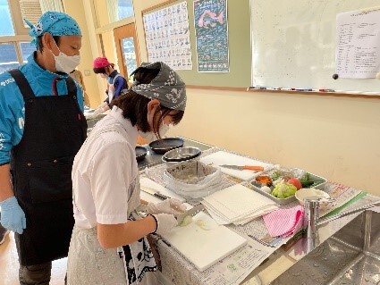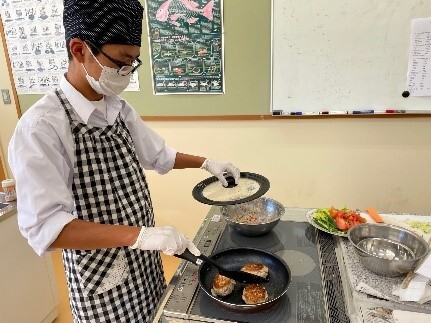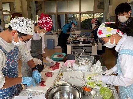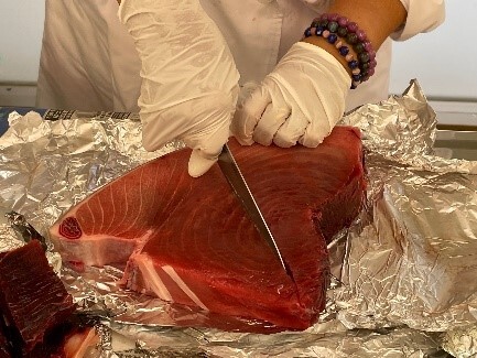 このあと、2年生は長久丸さんからご提供いただいた「本マグロ」を使った調理実習を行いました。