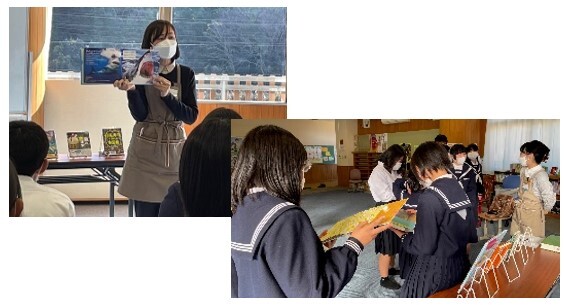 19日(月)市立図書館から司書の方々(矢賀さん,森本さん,藤田さんにお越しいただきました)。藤田さんから「魚」をテーマにした、森本さんからは「名前」をテーマにしたブック・トークをしていただきました。とても興味深く、ワクワクしながら、聞き入っていました。ありがとうございました。