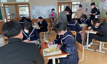 その間、三重大学サテライトの大野先生には熱く英語の指導をしていただきました。この取組は、小学校からの積み重ねがあって、年々充実してきているのだと思います。この9年間をとおした英語活動は、賀田小・輪内中の自慢であり、誇りでもあります。この取り組みをとおして、子どもたちが英語をもっともっと好きになって、将来、輪内の子どもたちが、英語をコミュニケーションツールとして使えるようになっていってほしいと願っています。