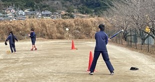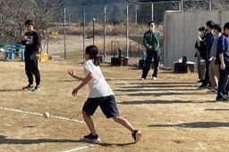 その後、課題を出し合い解決のために修正すべきことを交流しました。2巡目のチャレンジでは、両チームとも改善が見られ、1塁でアウトを取れる回数が増えていきました。お互いに気づいたことを声に出してプレーができていた素敵な授業でした。