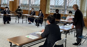 17日(火)「地域の課題や尾鷲市の未来について市長と語り合うことで、市政への関心を高め、ふるさとへの愛着を深める、未来を担う中学生の意見を聴き、将来のまちづくりに生かす」ことをねらいとして実施されました。何より市長とお話しできることが楽しみだったようで、思っていることを素直に伝えることができ、嬉しかった様子でした。