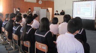 12日(木)に尾鷲市役所の政策調整課から片原さん、水産農林課から丸茂さんが講話に来てくれました。