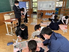新聞記事をSDGsの視点から読み込み、17のゴールとの関連を考えます。その後、各グループでポスターセッションを行いました。