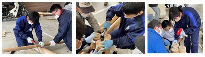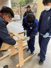 7、9日に実施しました。 おわせヒノキ。夏に「いかだ」の材料となった丸太たち。春には「ベンチ」と「杖たて」に変身して、古道を歩く人たちのお役に立ちます。3月17日(金)に設置予定です。