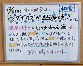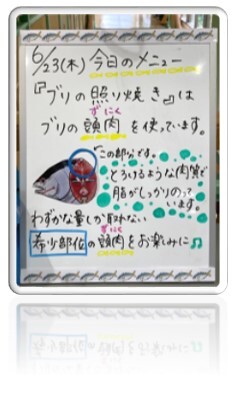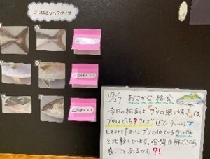 今回は「ブリ」を照り焼きにしていただきました。子どもたちにも大好評でした。