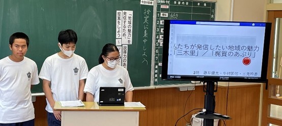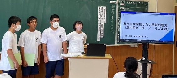 今回は、尾崎先生が2年国語科での授業研修を行いました。「『地域の魅力』を発信するため、説得力のある提案をしよう~プレゼンテーション」という単元構成の提案授業でした。