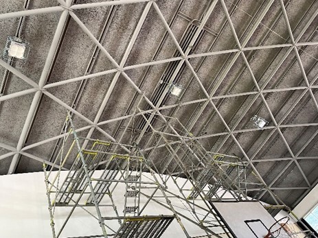 体育館の照明が切れたままで暗かったのですが、今までの照明をすべて撤去し、LED照明に取替えて下さいました。LEDに替えると、かなり明るくなるそうです。とにかく良かったです。