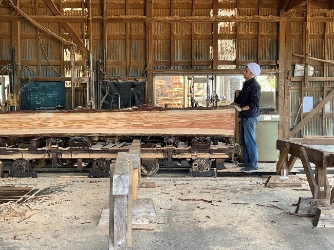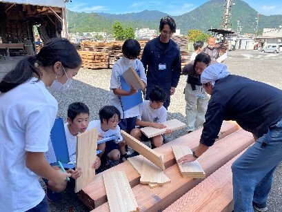 今回は、山で伐採された尾鷲ヒノキなどの木材がどのような流通や加工を経て、私たちの身近なところに届くのかを実際に見て学びました。