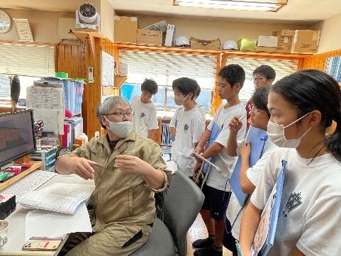 今回は、『林業体感ツアー』。はじめに高村さんからの講話を受けツアーに出発!(1)尾鷲材木市場「おわせヒノキの特徴や販路について」(2)カネタ産業(製材所)「製材のしくみについて」(3)尾鷲プレカット「プレカット工場について」というように、3か所を訪問させていただきました。学校に戻って、振り返りと次回の予定についてのお話がありました。