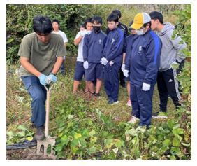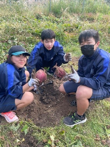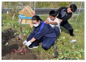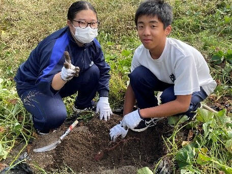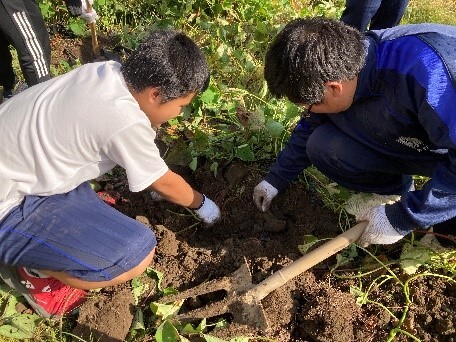 収穫した芋は、11/8(水)中学校の給食に,11/16(木)賀田小の給食に提供される予定です