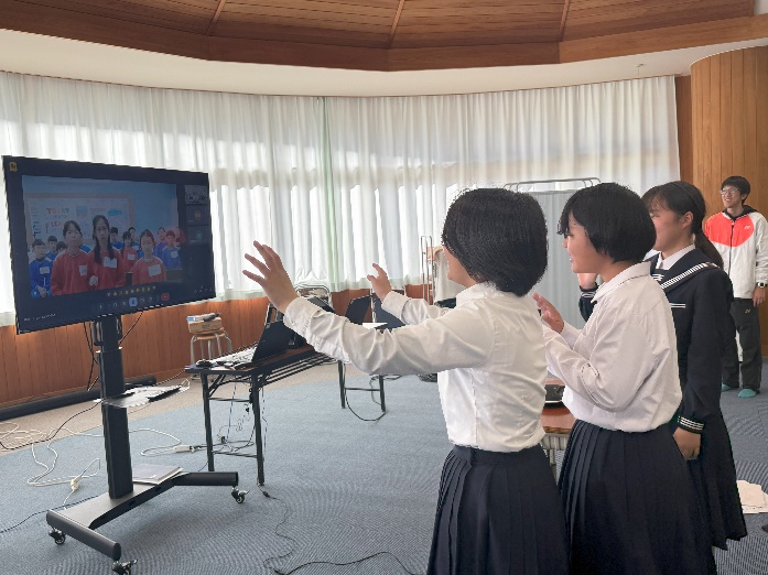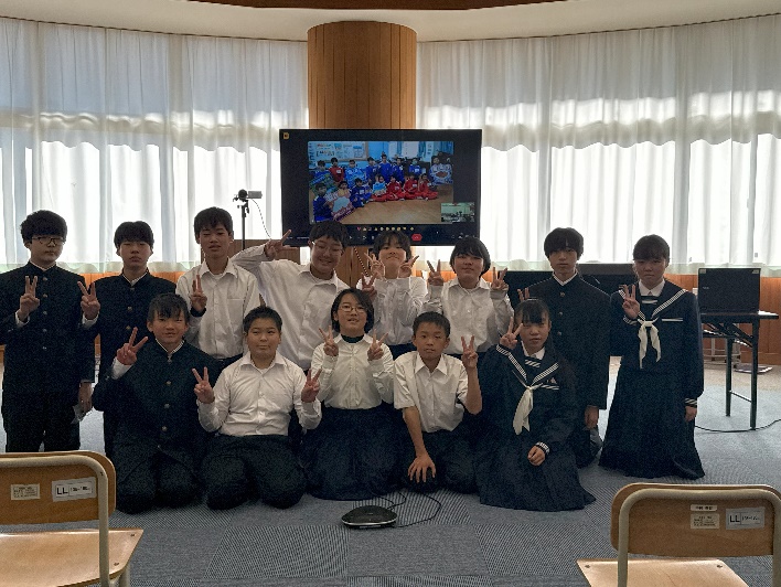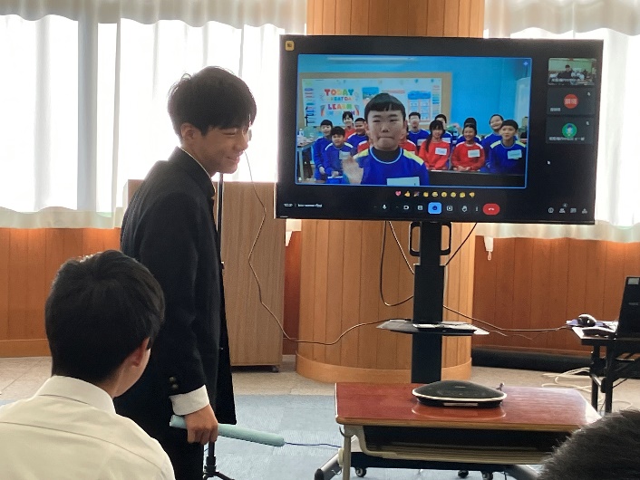 第2回国際交流会 12月17日(火)、今年度2回目となる国際交流会を行いました。1学期は台湾の興達小学校が来校し、対面での交流会でしたが、今回はオンラインで行いました。モニター越しではありましたが、スピーチやクイズをしたり、歌を歌ったりしながら、英語での交流を楽しみました。